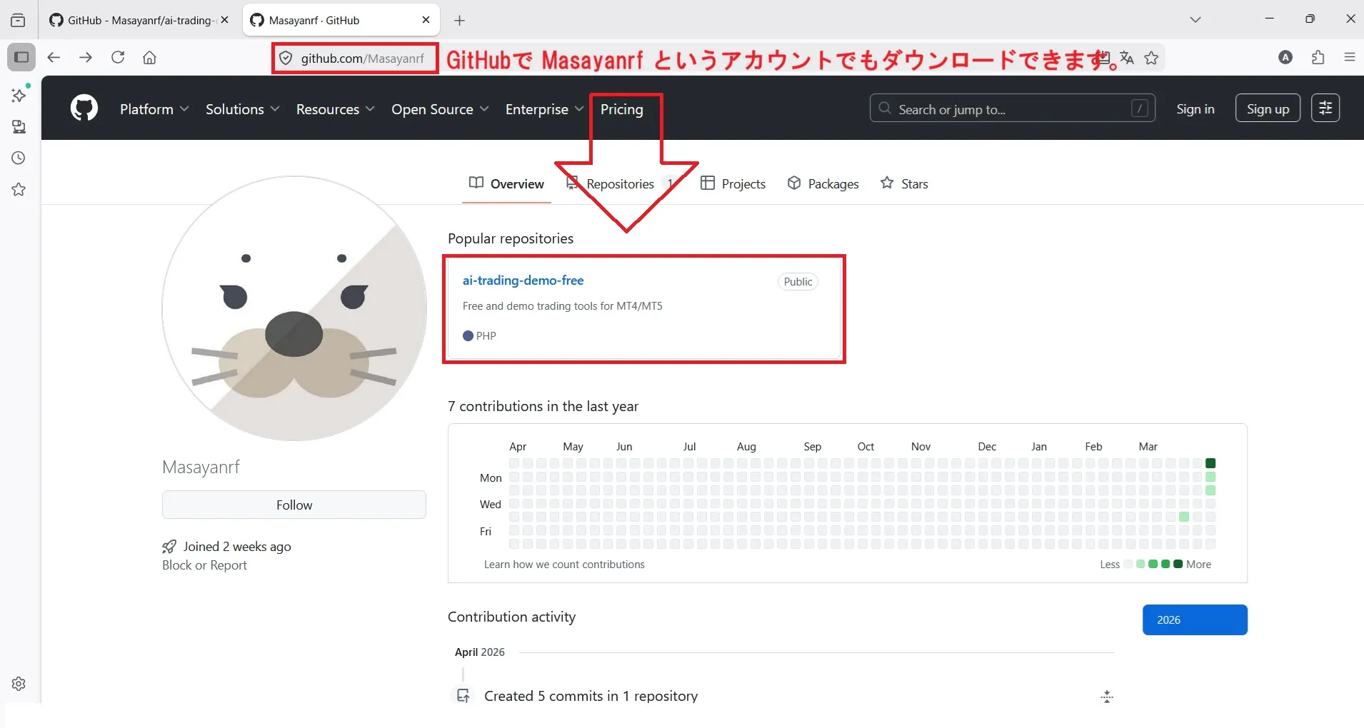 GitHubの私のページでも公開しています。GitHubは、世界中のプログラマーや開発者がソースコードを公開・共有している、世界最大級の開発プラットフォームです。