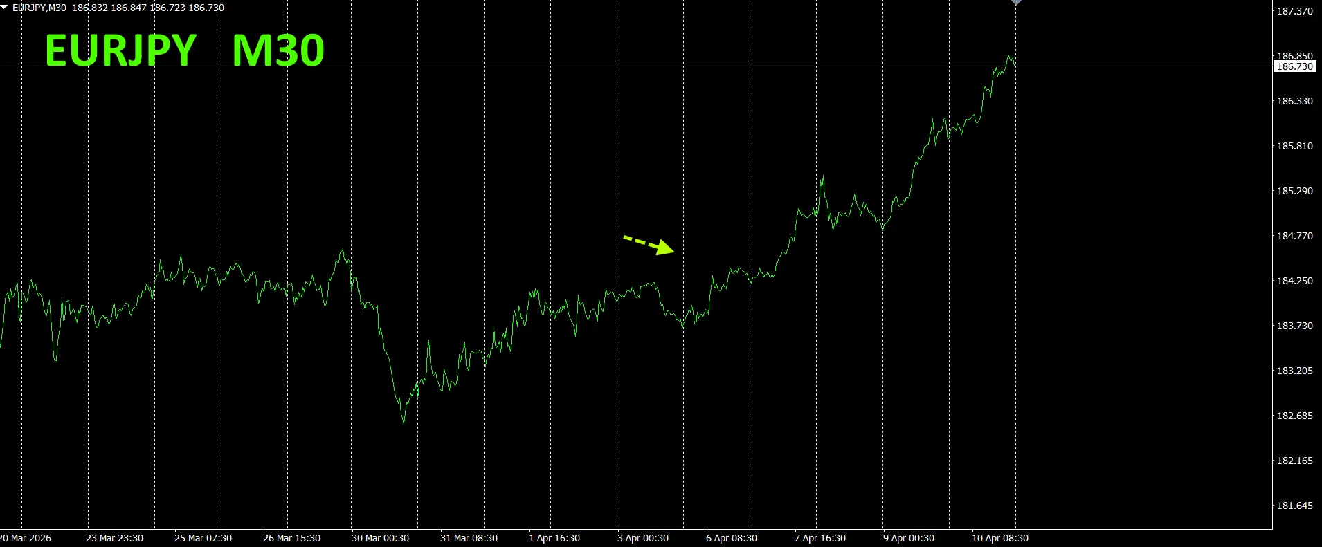赤色の矢印がスクリーンショットを撮影した所です。著しく上昇したポイントを捉えています。