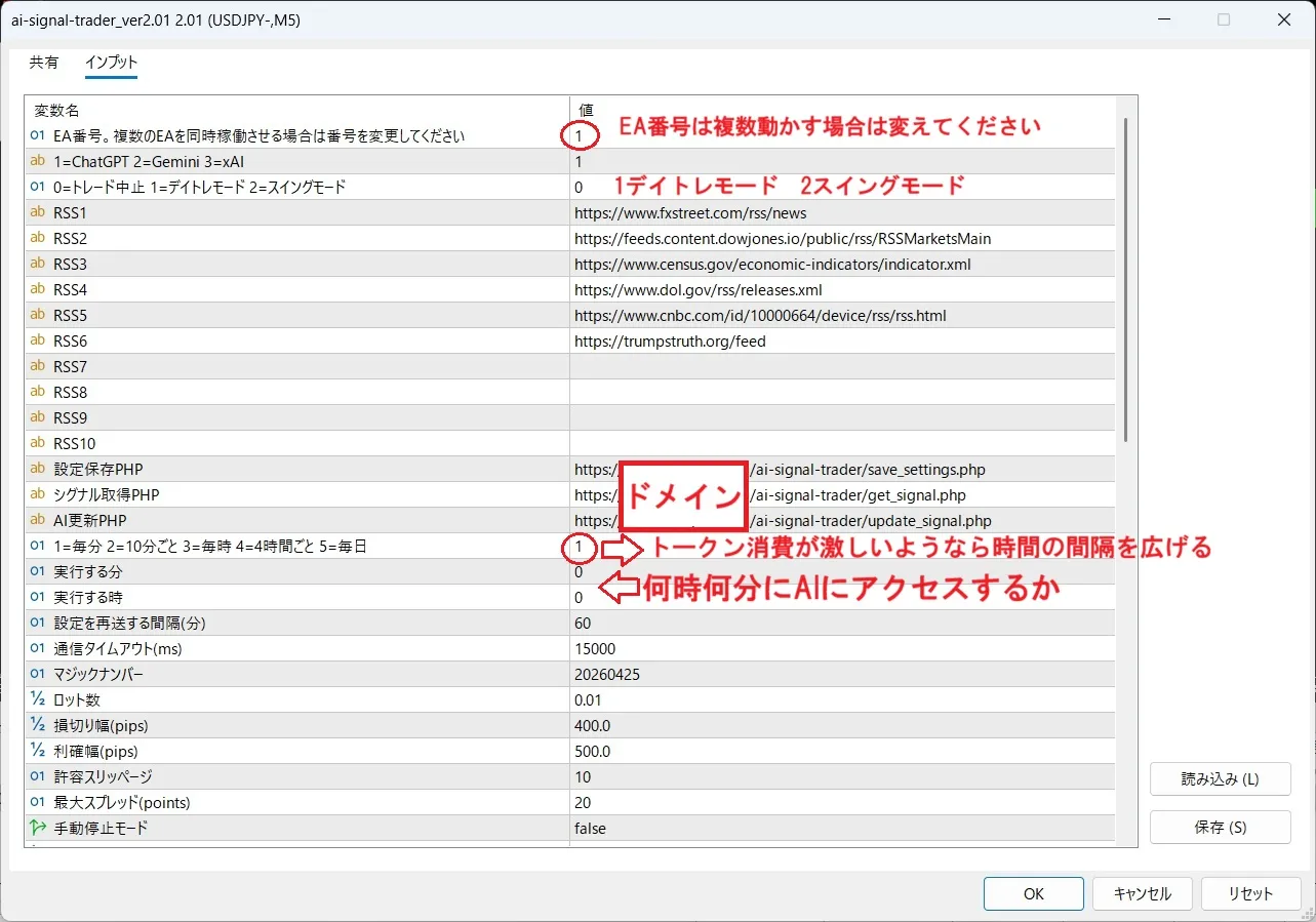 ただし、実際のトレード回数は、元となるニュースサイトやRSSの更新頻度に左右されます。