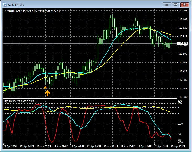 【RCIを極めて移動平均線フィルターで勝つ!!】豪ドル円 5分足 mBDSRのサイン