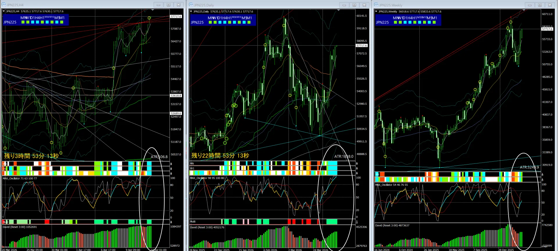 オリジナルインジケーターによる、現状の分析コメントであり、