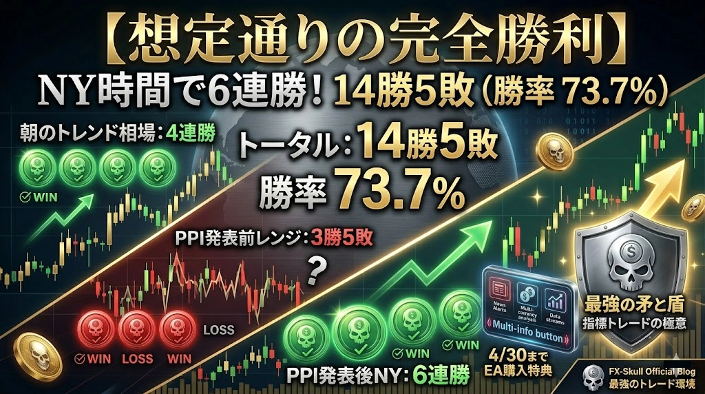 【絶好調】朝から4連勝スタート!しかし今夜21:30「米国PPI」要注意!最強のリスク管理術【限定特典】