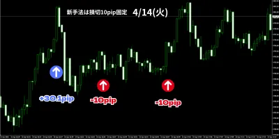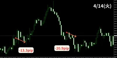 4月14日の「30秒足GOLDオートマチックFX」のトレード結果