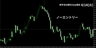 急激に動いたかと思えばレンジ、中盤も目立った動きがなく、終盤で一度大きく上昇するも再び抑えられて失速、とまるでチャンスがありません。