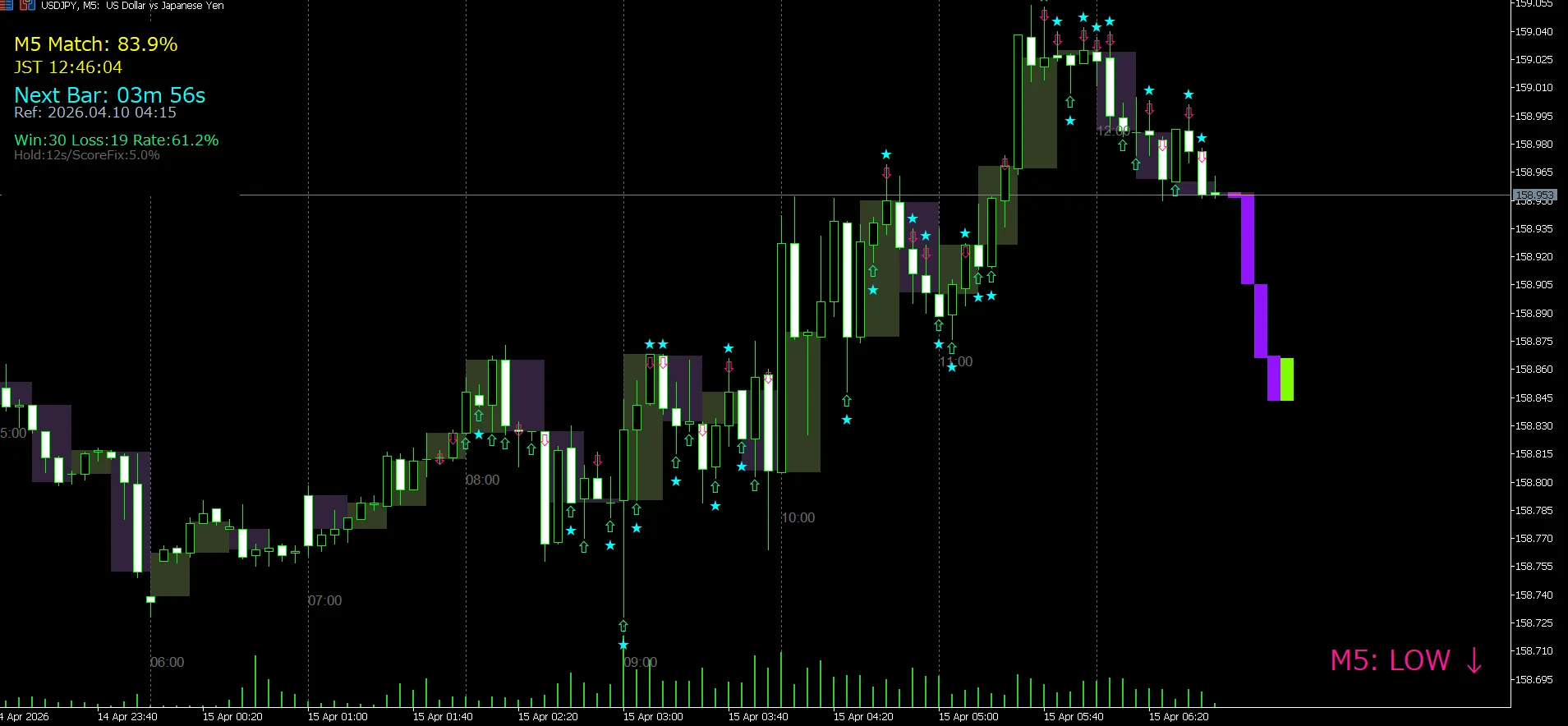 ? M5(5分足版) 上位15分足の勢いを背景に投影し、ゆとりを持って「統計的優位性」を刈り取る安定仕様。