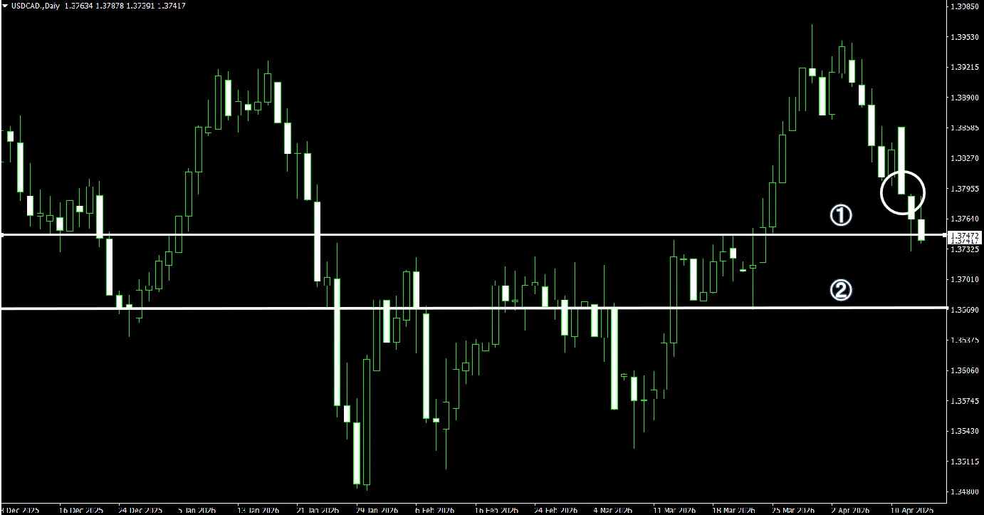 上のチャートはUSD/CAD日足のチャートです。