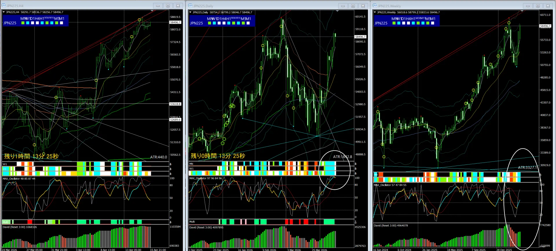 日足のMAXオシレーターの位置も高い