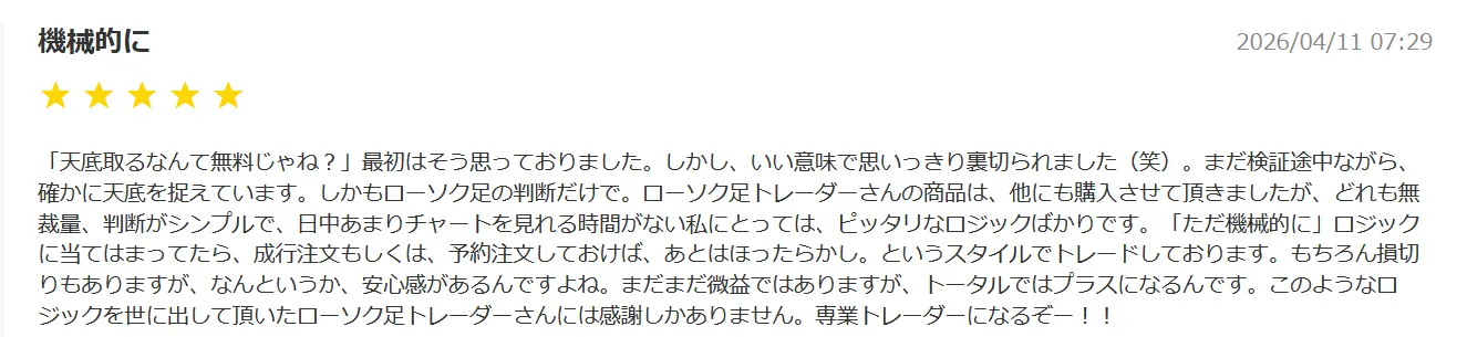 そしてさらに、「天底FXロジック」をご購入頂いた方からも、