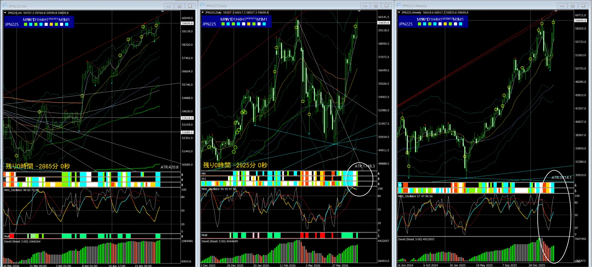 日足:MAXオシレーター:シンクロバンド 「弱い上昇」