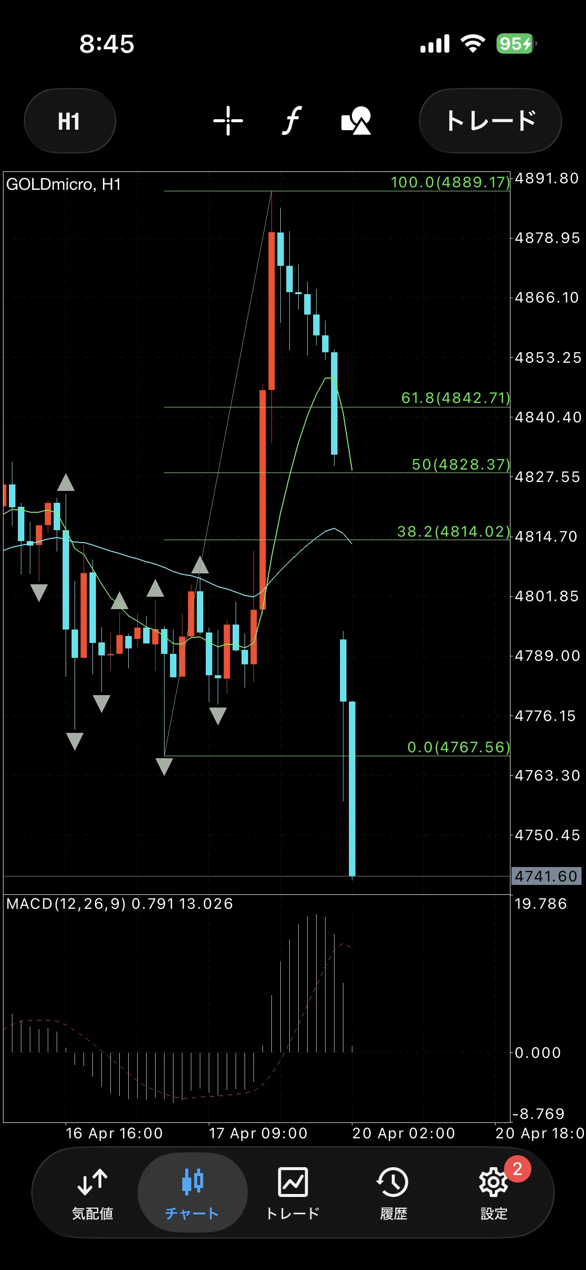 MACDはDC開始ですが、まだMAがDCしてないので今朝の時点で下方向と決め打ちする段階ではないかも?