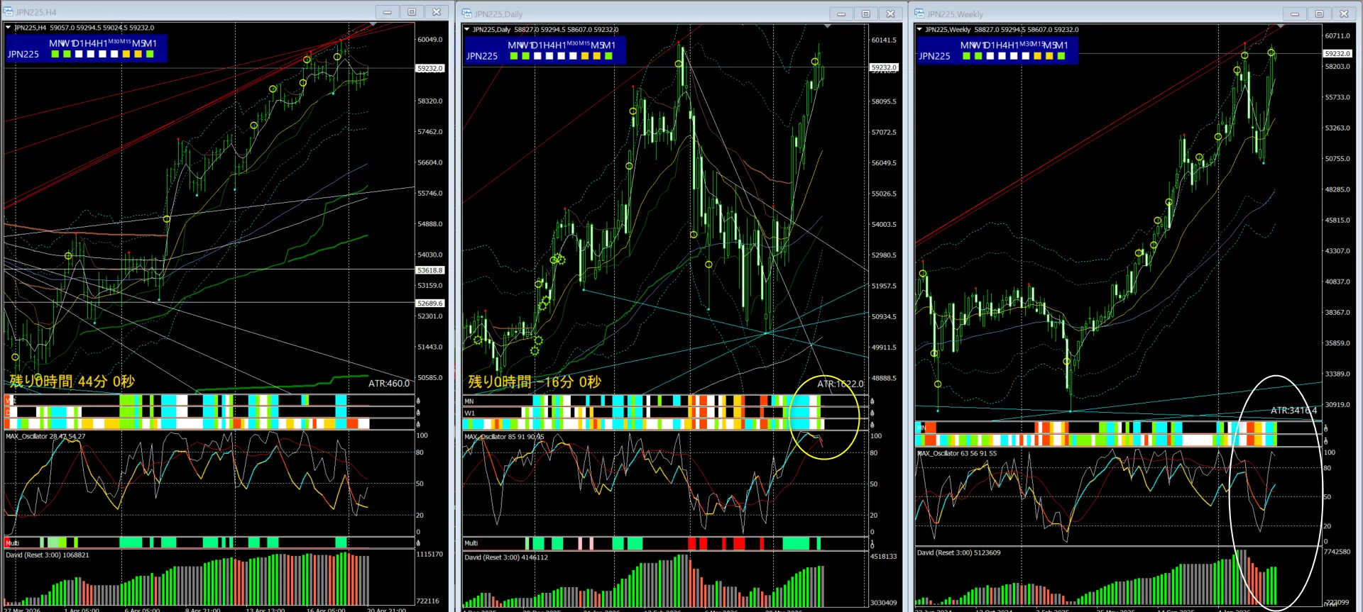 オリジナルインジケーターによる、現状の分析コメントであり、