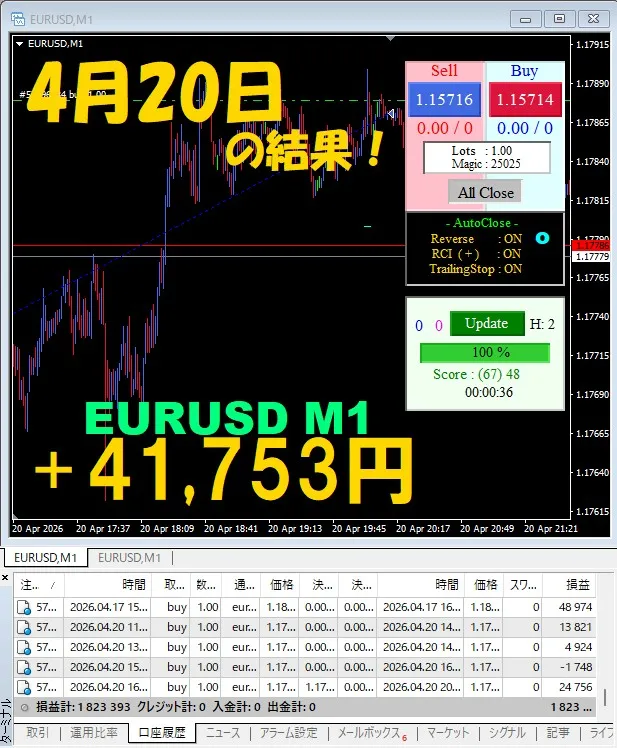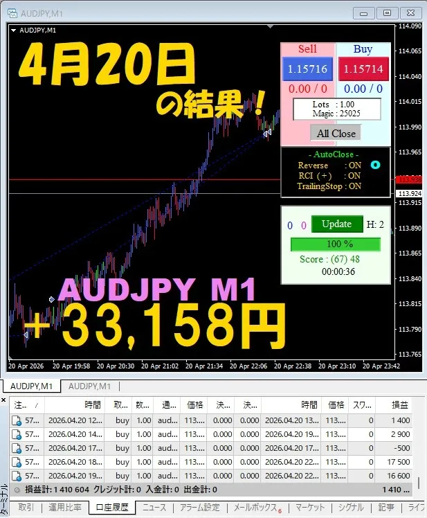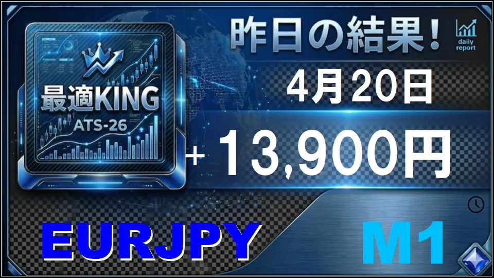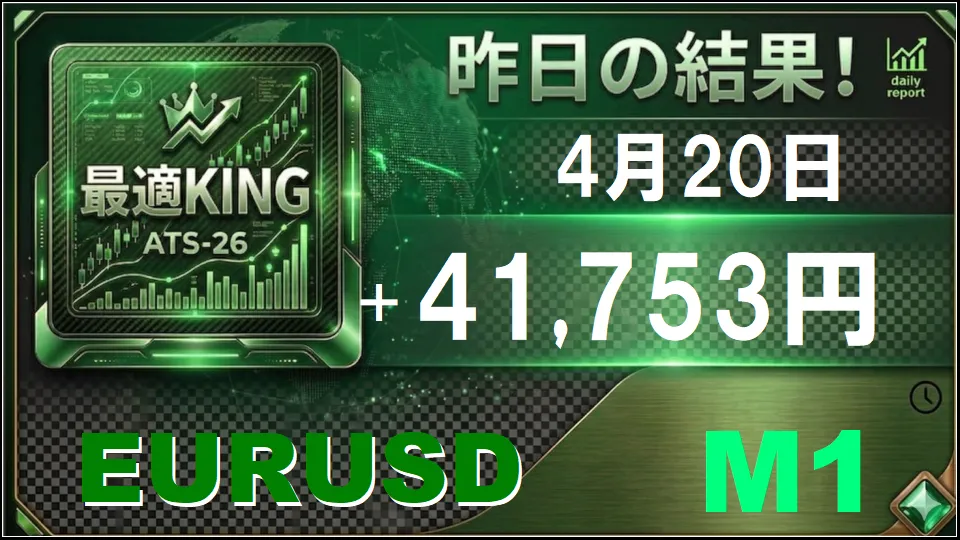 昨日の実績【4月20日】週明けから絶好調!AI 最適KING、3通貨ペアで爆益御礼!