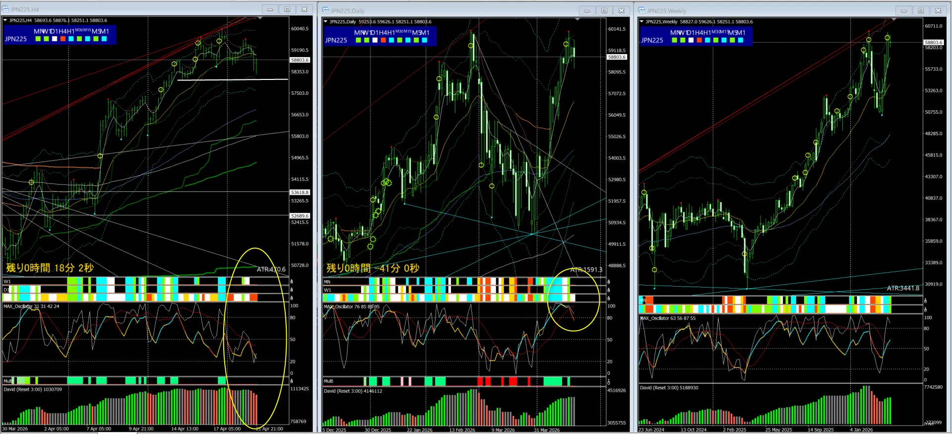 日足のMAXオシレーターの位置も高い
