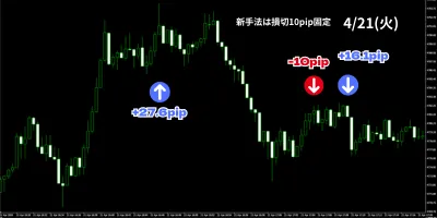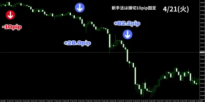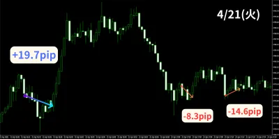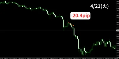 4月21日の「30秒足GOLDオートマチックFX」のトレード結果