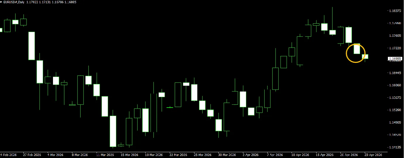 上のチャートはEUR/USD日足のチャートです。