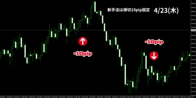 3連敗といいところなしでしたが、損切は10pipなので微損で終了です。