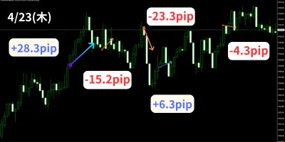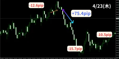 4月23日の「30秒足GOLDオートマチックFX」のトレード結果
