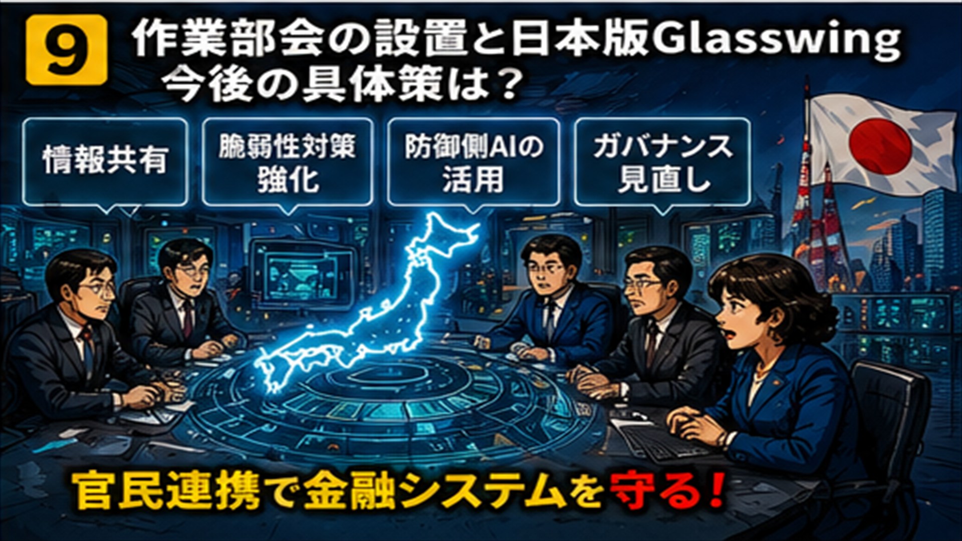 会議では「日本版Project Glasswing」に相当する官民連携作業部会の設置を決定。情報共有、脆弱性対策強化、防御側AIの活用、ガバナンスの見直しを議論します。 経営トップレベルで「新たな備え」を進める方針も確認済み。