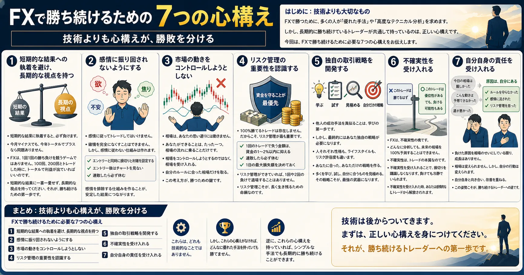 今回は、FXで勝ち続けるために必要な7つの心構えをお伝えします。