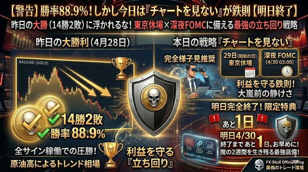 【勝率50%の現実】全サイン稼働ならマイナス!木曜のFOMC・GDPまで「完全様子見」を推奨する理由と【4/30特典終了】