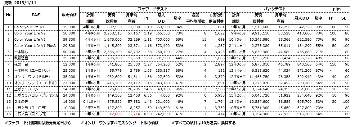 【CYのEA】フォワートテストモニタリング一覧表_20190407 更新 #50