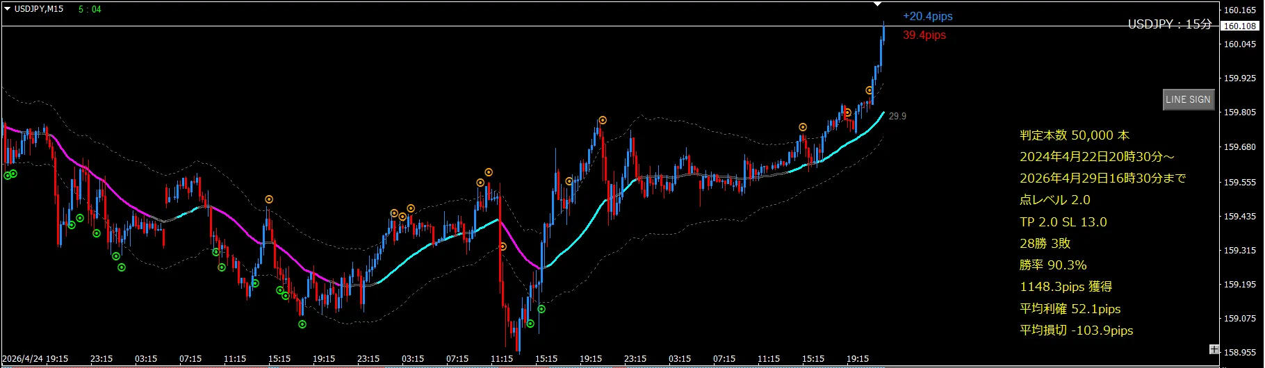 つまり、更新遅れやリペイントの心配がありません。後出しのようなシグナルではなく、実際のトレード判断にそのまま使える設計になっています。もちろん、これはあくまで過去検証の結果です。今後も同じように相場が動く保証はありません。