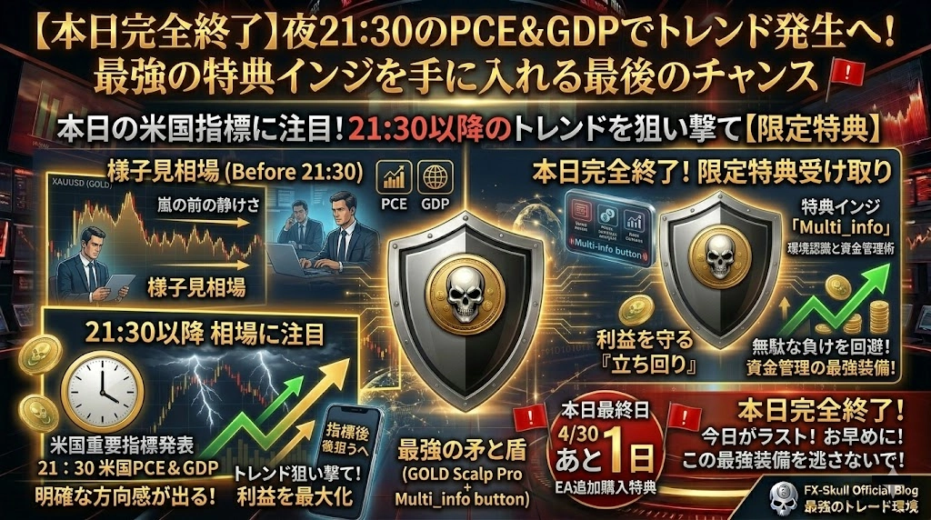 【本日完全終了】夜21:30のPCE&GDPでトレンド発生へ!最強の特典インジを手に入れる最後のチャンス