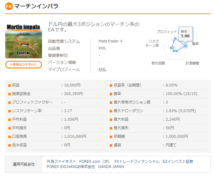 年利30%が期待できる!損切りありでリカバリーの早いマーチン系EA「マーチンインパラ」