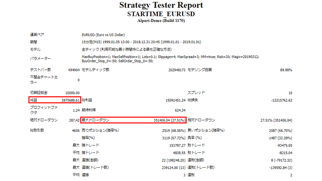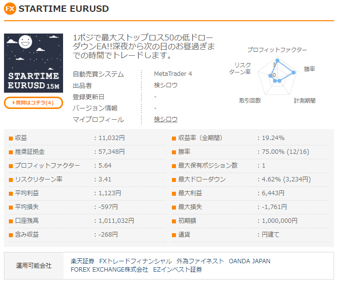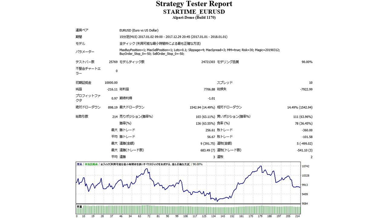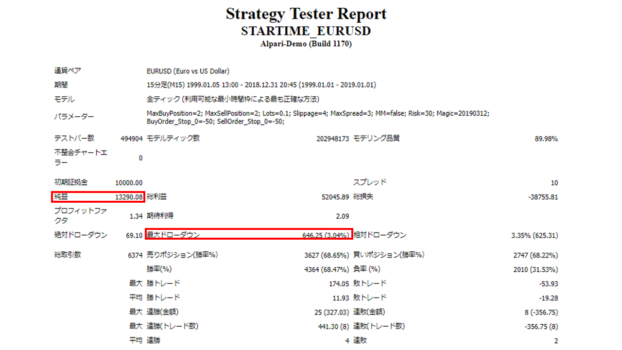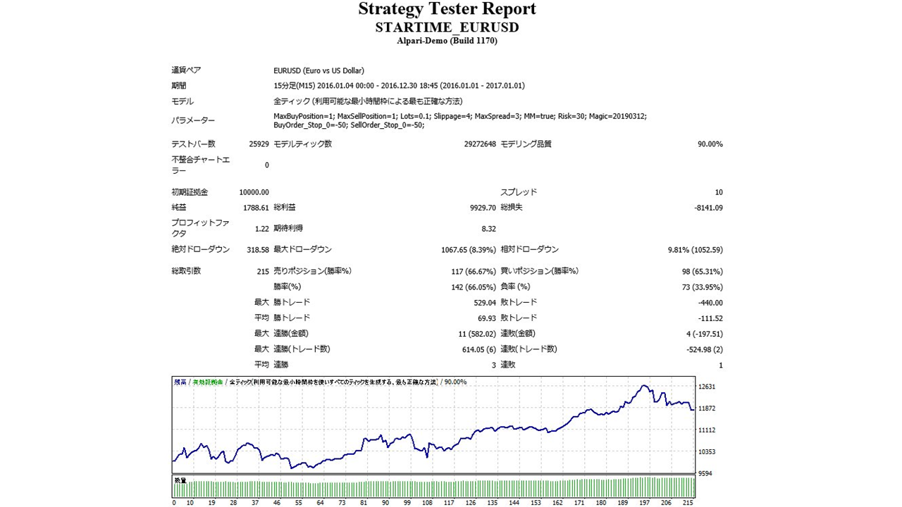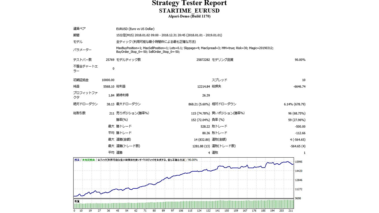 他のEAとのポートフォリオを考えるならコスパの良さを活かしポジション数1で運用。「STARTIME EURUSD」を単独で運用する予定なら自身の資金に合わせてポジション数を変更して設定するのが良いのではないでしょうか。