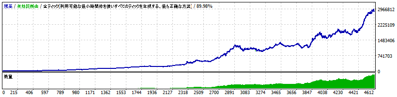 このEAでは単利・複利の変更が可能なので、それぞれのバックテスト結果を見てみます。