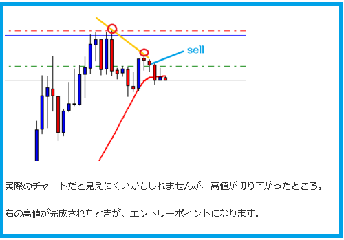 「高値切り下がりでエントリー」だと、青丸が高値切り下がりで正しいです。