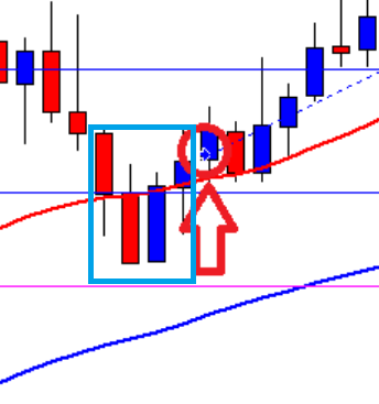 「3本セットの安値確認してエントリー」ということだけ覚えると、こういう形はエントリーできない形になるでしょう。