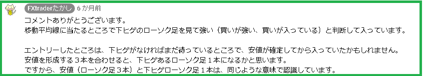 「たかしさんが、安値が出たら買うと解説してたから。そういうルールだから。」