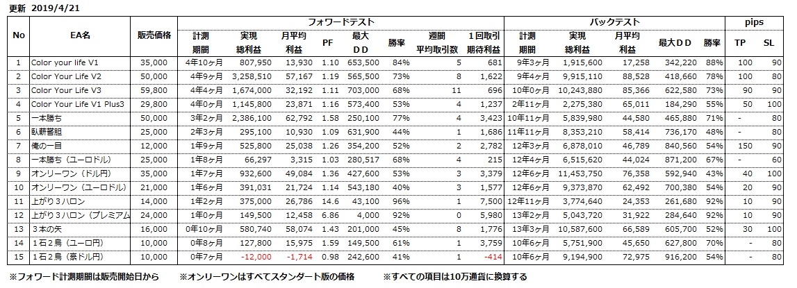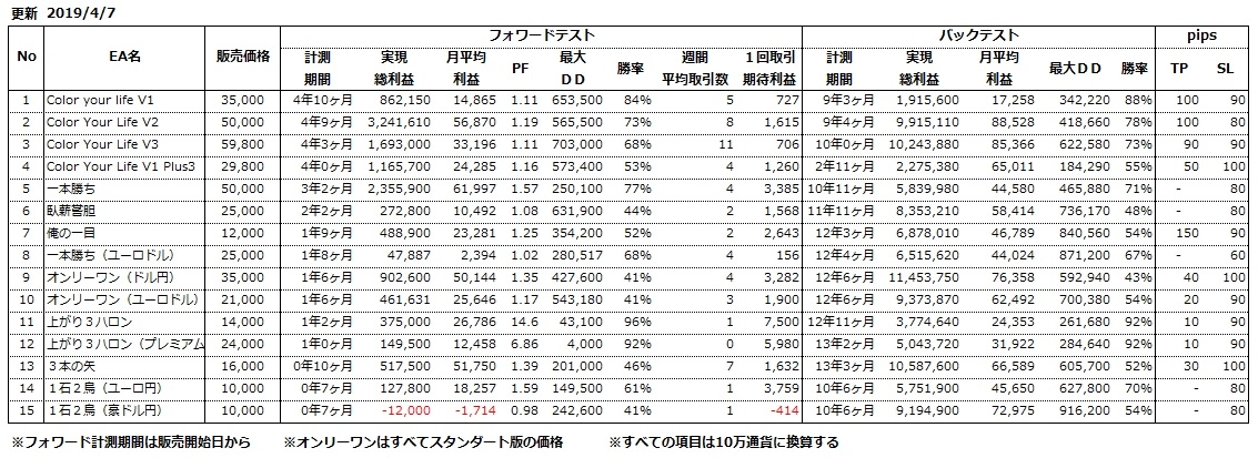 【CYのEA】フォワートテストモニタリング一覧表_20190414 更新 #51