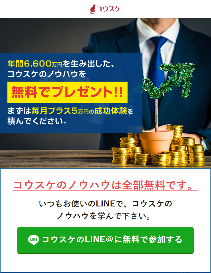 【コウスケ公式LINE@】登録で5大特典ページへご招待!