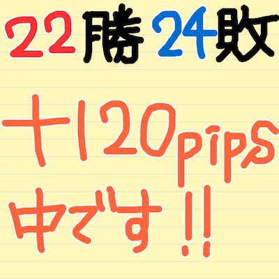 ここまでのトータル成績は4勝4敗で+200pips。トレードの回数は少ないけど、安定しています♪
