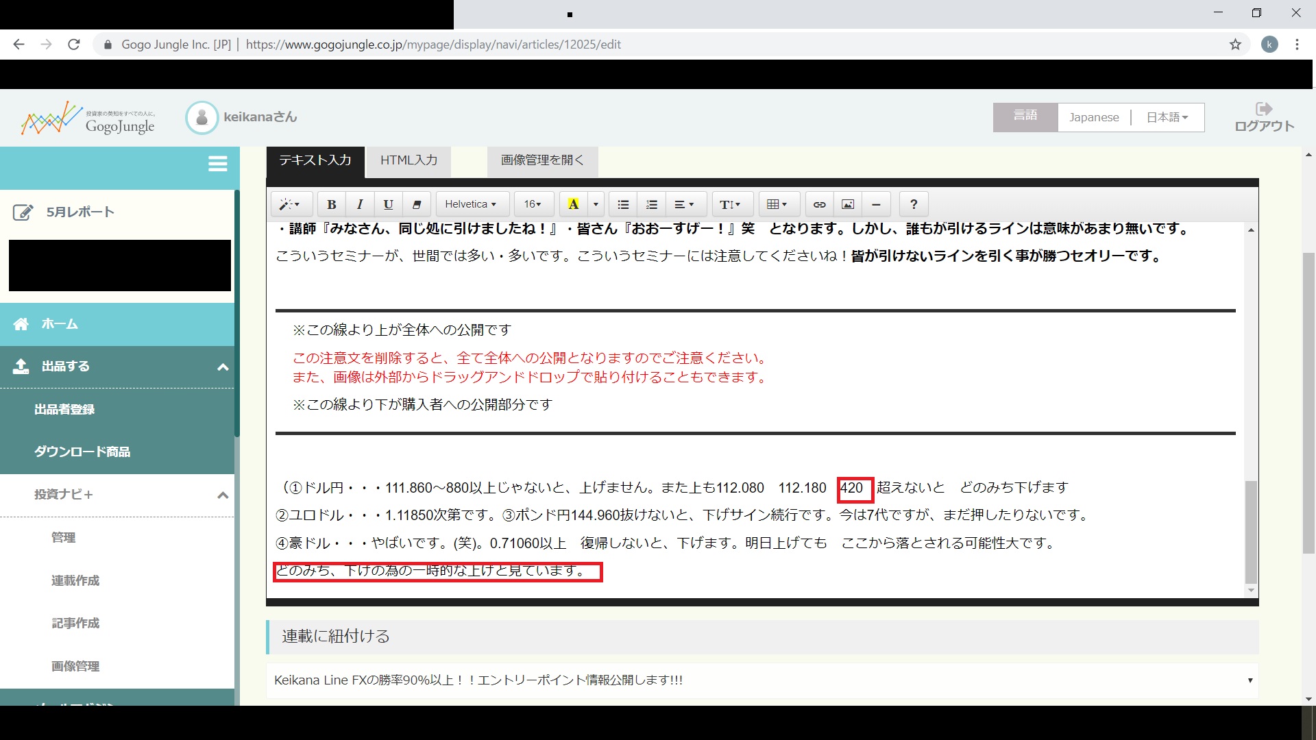 (はい、keikanaです。今回は 何時頃に下げ予想していたのか???を、公開します。