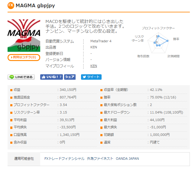 MACDを駆使したロジックで利益を吹き出す『MAGMA gbpjpy』