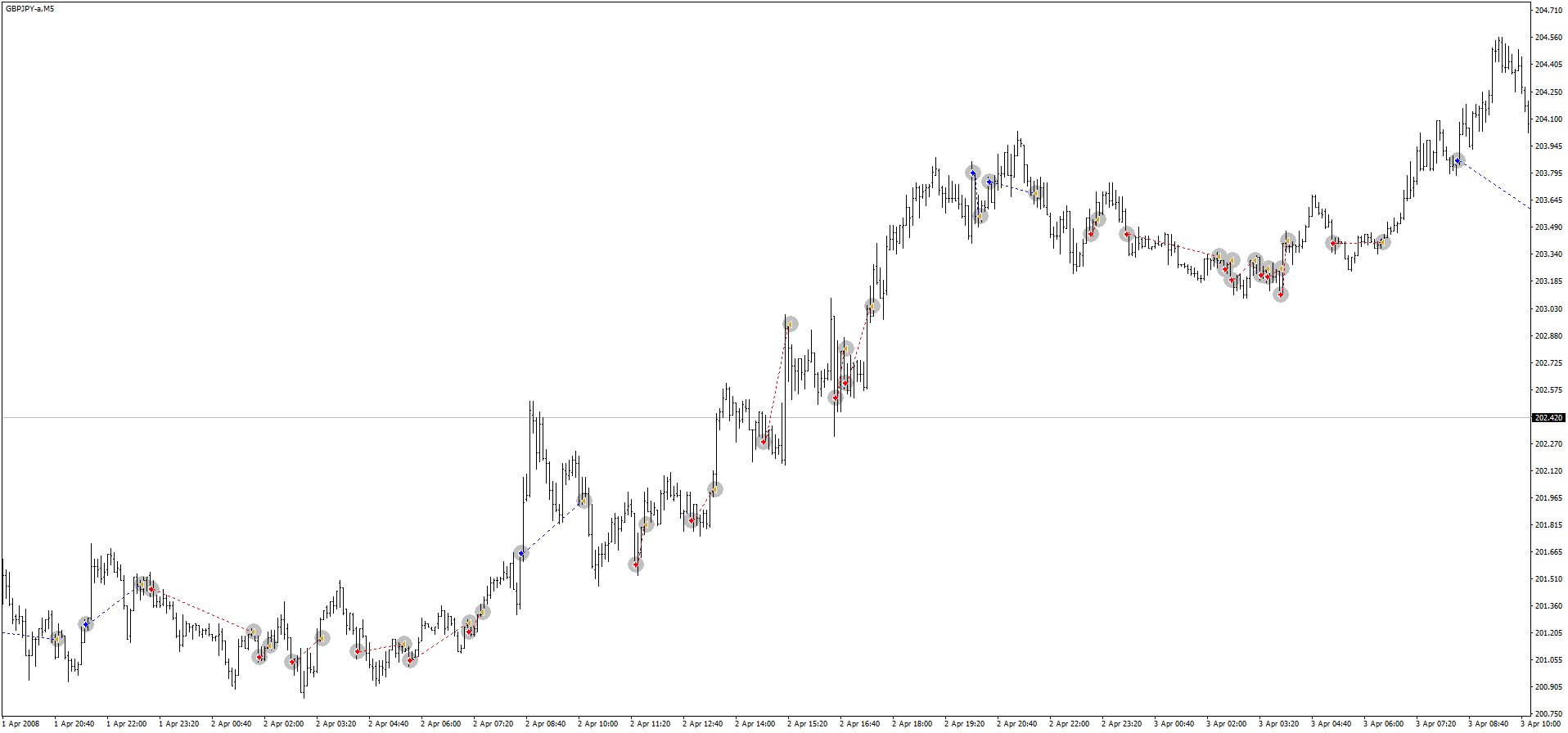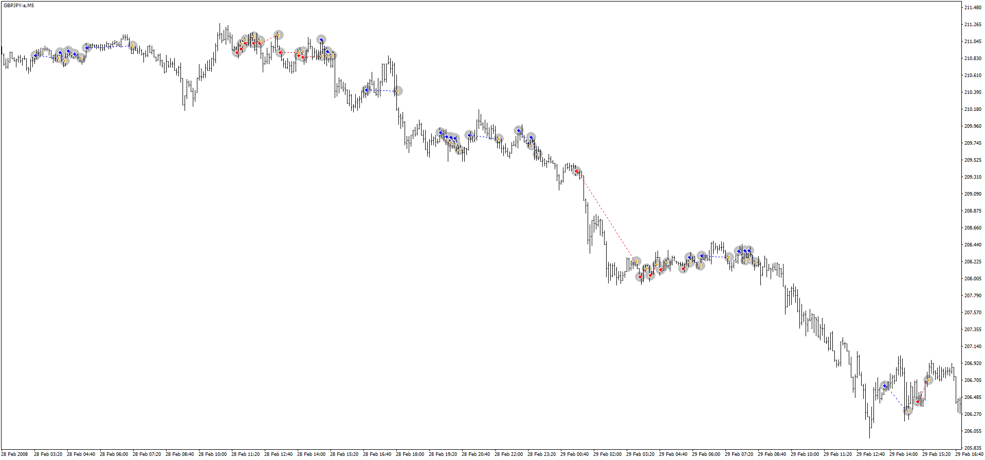 ▲赤色が買いで青色が売り、黄色が決済です。上昇トレンドの一例ですが、基本は順張りですが、ときどき逆張りでもトレードをしています。