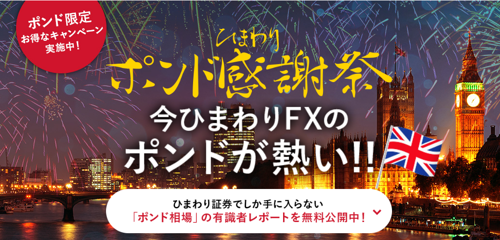 ひまわり証券ではそんな英国のポンド相場について特別サイトを設け特別レポートを公開したり、お得なキャンペーンを打ち出しています。