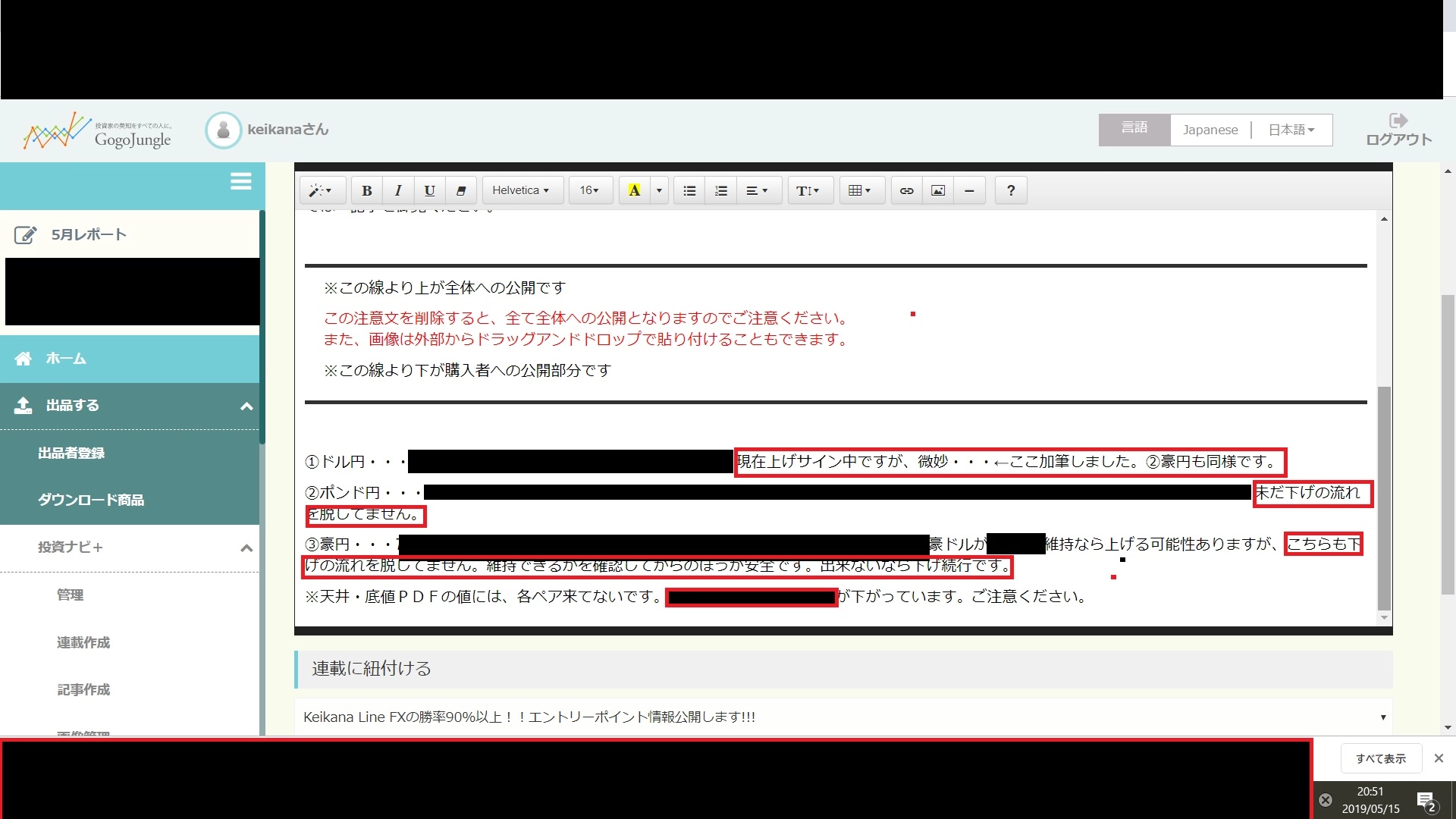 皆様はじめまして、keikanaと申します。ローリスク・ハイリターンの優良情報公開・自己分析推奨ブログも運営しております。記事は全て相場開始前から予想→勝率80%です。また、分析方法は独自ライン法ですが、他に独自開発のサイクル理論・パラレル理論を駆使して投資しております。以後よろしくお願いいたします。