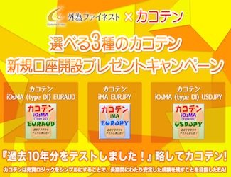 これはMT4対応証券会社、外為ファイネストのキャンペーンで新規口座開設をすれば3種類のうちの1つの「カコテン」がもらえるというものになります。