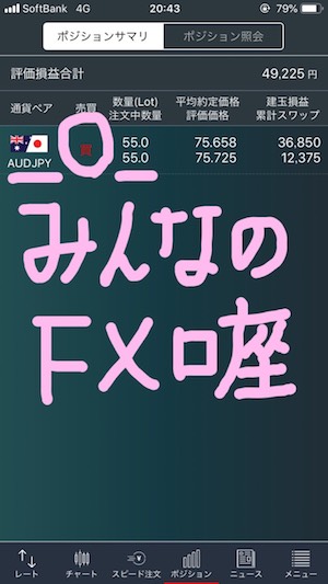 この時点では、みんなのFXの豪ドル円買いが45円だったのですが、それが24日には40円にまで下がってしまいました。このタイミングはなかなか読めないので、両建てするタイミングはある意味運任せ。