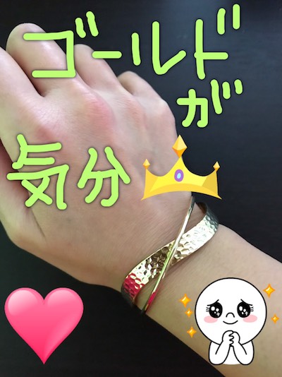 最近買ったバングル。シルバーよりゴールド調が好き。お気に入り。