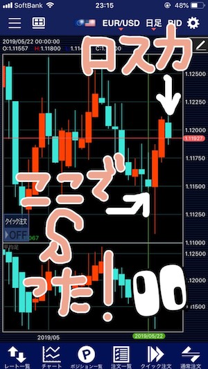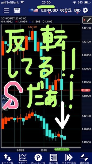 - 23時にユーロドルのチャートを開き、22時台の1時間平均足が反転している場合のみエントリー