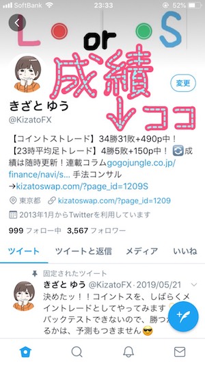 現時点のトータル成績は、Twitterにこんな感じで載せています。プロフィール欄の情報を、随時更新しています。