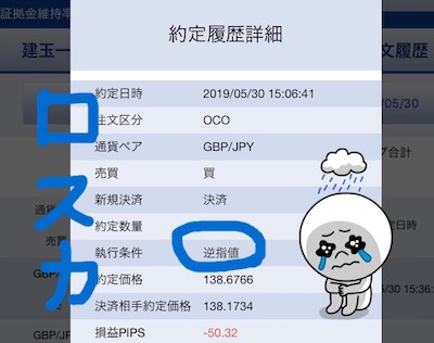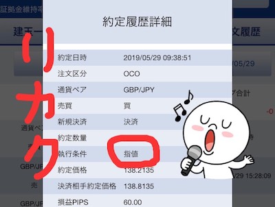 - 利益確定が60pips、損切りが−50pipsのOCO決済