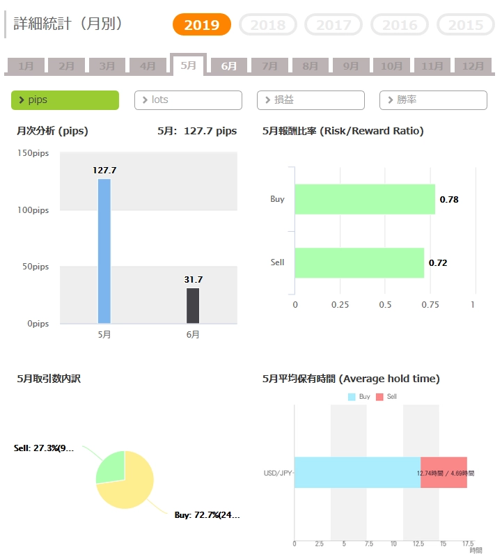 冒頭でも紹介した通り5月はプラス127pipsの収益をたたき出しています。