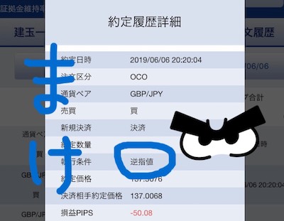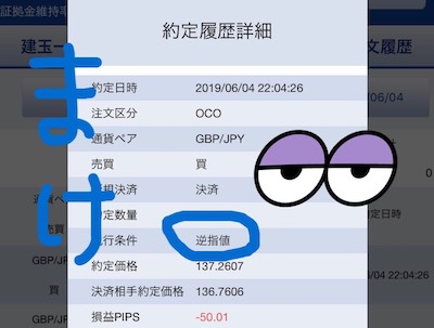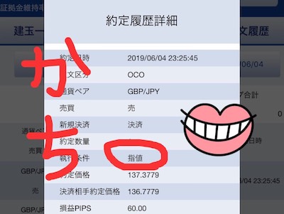 - 利益確定が60pips、損切りが−50pipsのOCO決済