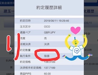 - 利益確定が60pips、損切りが−50pipsのOCO決済